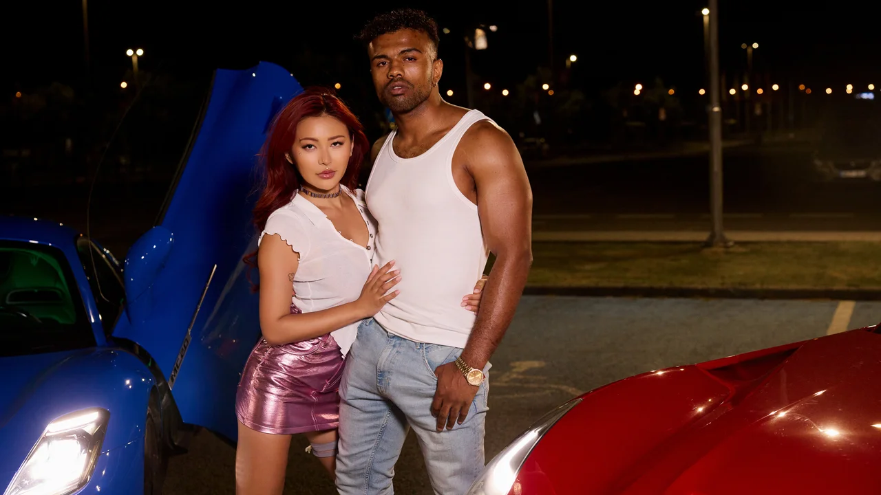 A Black racer wins more than just the race; the reward comes in the form of a fiery, tattoed Asian with big boobs. After a steamy car blowjob, this dude licks her pussy from behind before shoving that big dick in her like there's no tomorrow.