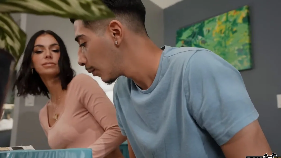 Nympho babe is seducing the nerdy lad for oral and vaginal sex