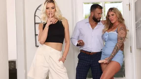 Tattoed bimbo shares the husband and a strap-on with a friend