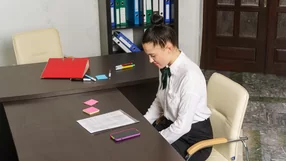 Nerdy guy enjoys interracial sex with chesty black masseuse
