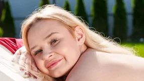 Cute Blonde Rubbing Her Horny Pussy On A Sun Lounger